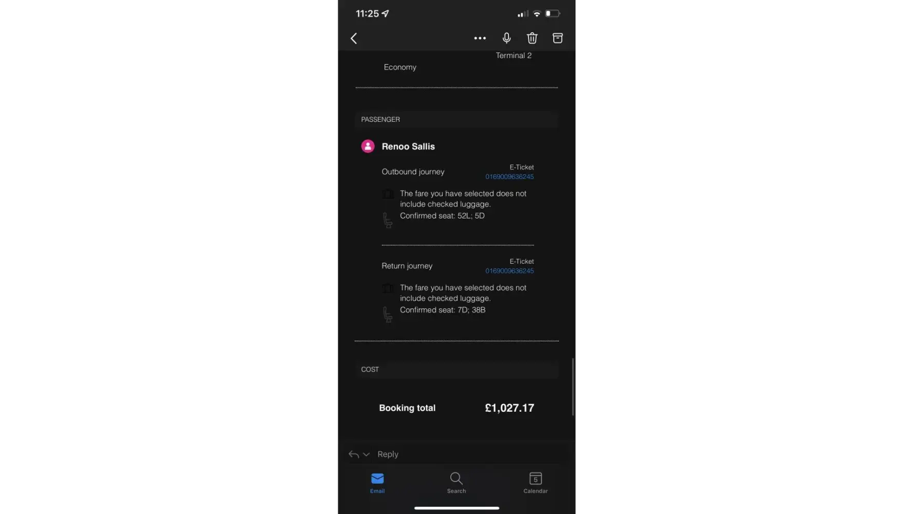 Return flight VY6307 18/9/22 [Bilbao to Luton]