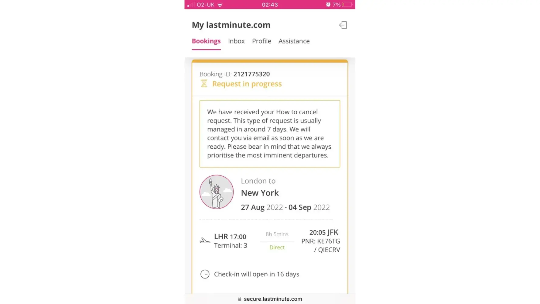 On the 29/08/2022, I bought a flight with lastminute.com choosing the flex ticket option, but soon after I got the news of a family member who unfortunately has passed away so I requested the flight cancellation almost the same day before 12 hours. My request was denied, but was offered the possibility of changing the dates of my flight due to my flex ticket. So, I submitted a request for a change of the flight-date, that was also refused because they were unable to provide it due to its unavailability.