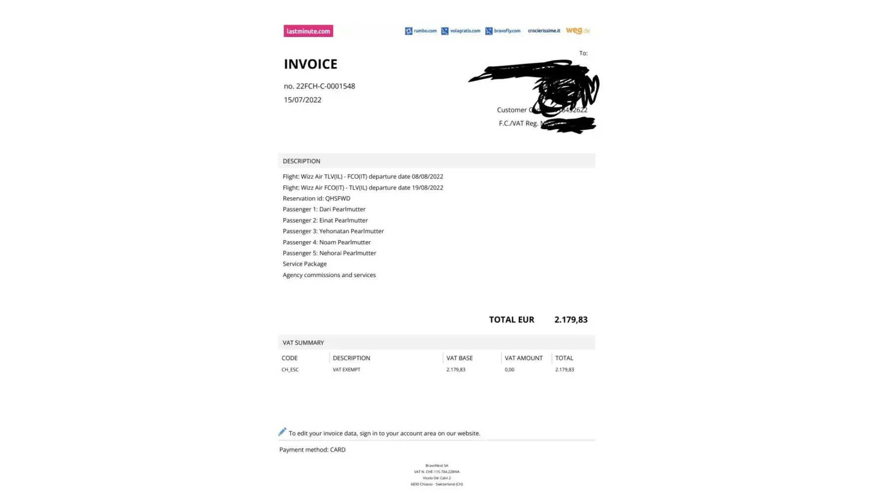 I bought plane tickets from Tel Aviv to Rome and back. I chose seats and paid for them. I made the purchase in June 2022 for August 2022.