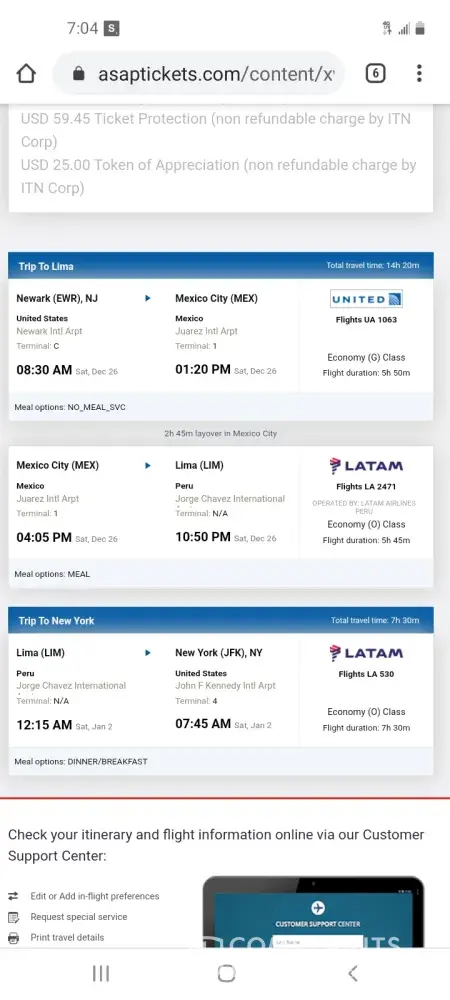 To: Customer Service at United or Latam, or whoever is in charge of travel problems