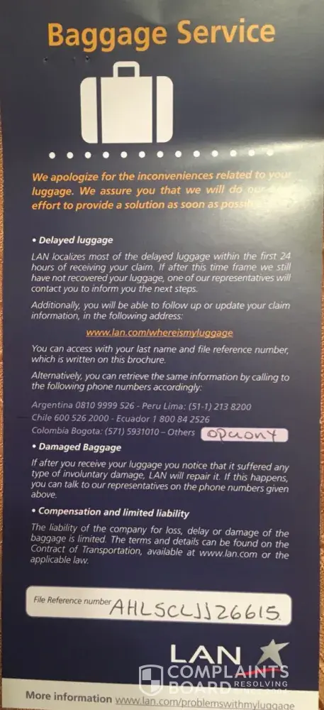 And I called many times to your office and they said your baggage's are on the way but I have not received my baggage's on time. i received my one baggage on 25 October 2017, which i received from BLUE EXPRESS OFFICE from LOS ANDES not on that address which i provide to your airline and second baggage i received on 26 October 2017. Its written on the document you gave to me that if you not received your luggage within 24 hours one of your staff will contact and update me, but no one contact me instead i have to call to the airline to get updates .what is this, what kind of service you are providing, even you are not on your commitments, i am amazed how you running this airline or you don`t bothered about your customers.