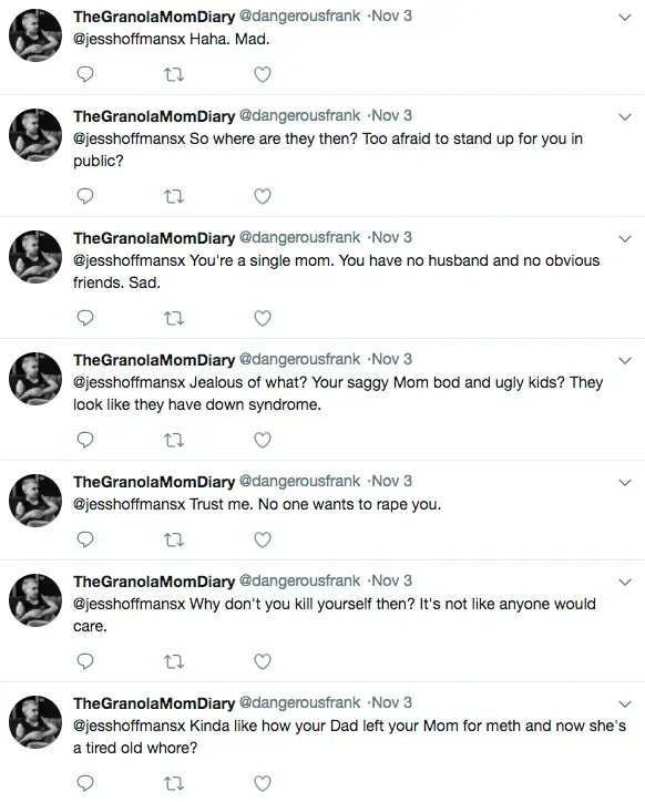 She is mental. It's been 10 years that I've been reading about myself online and harassed by her on Facebook and Twitter. She used to make pages about me on blogspot filled with horrible content about how I'm a sex offender and a cat killer. She will never stop.