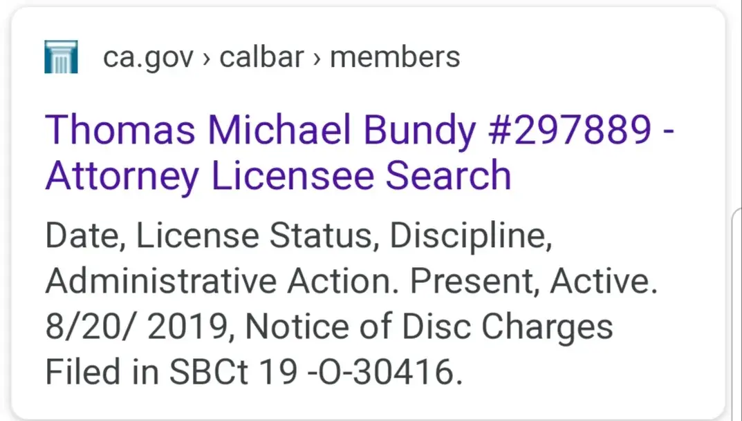 CA state bar filed disciplinary charges against thomas m Bundy, check the website