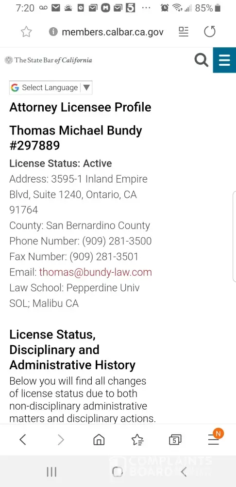 Law Office Of Thomas M. Bundy complaints: history and resolution overview