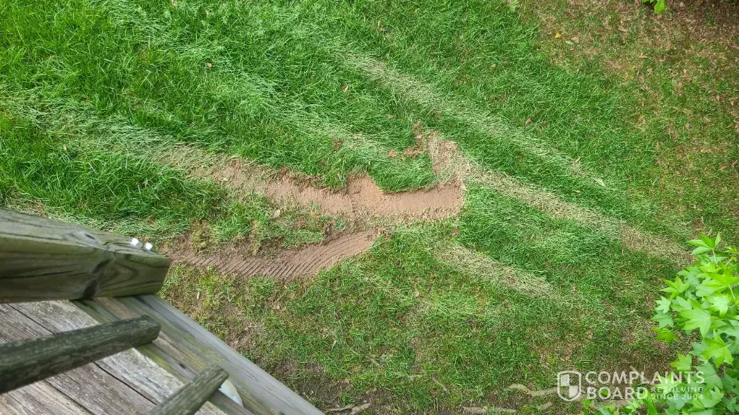 Service technician operated a vehicle that tore large patches of grass out of my backyard and left tire tracks across the rest of the yard. Then failed to notify me before leaving. After contacting the local office last week they said the issue would be addressed immediately but as of today I have not been contacted and issue has not been resolved.