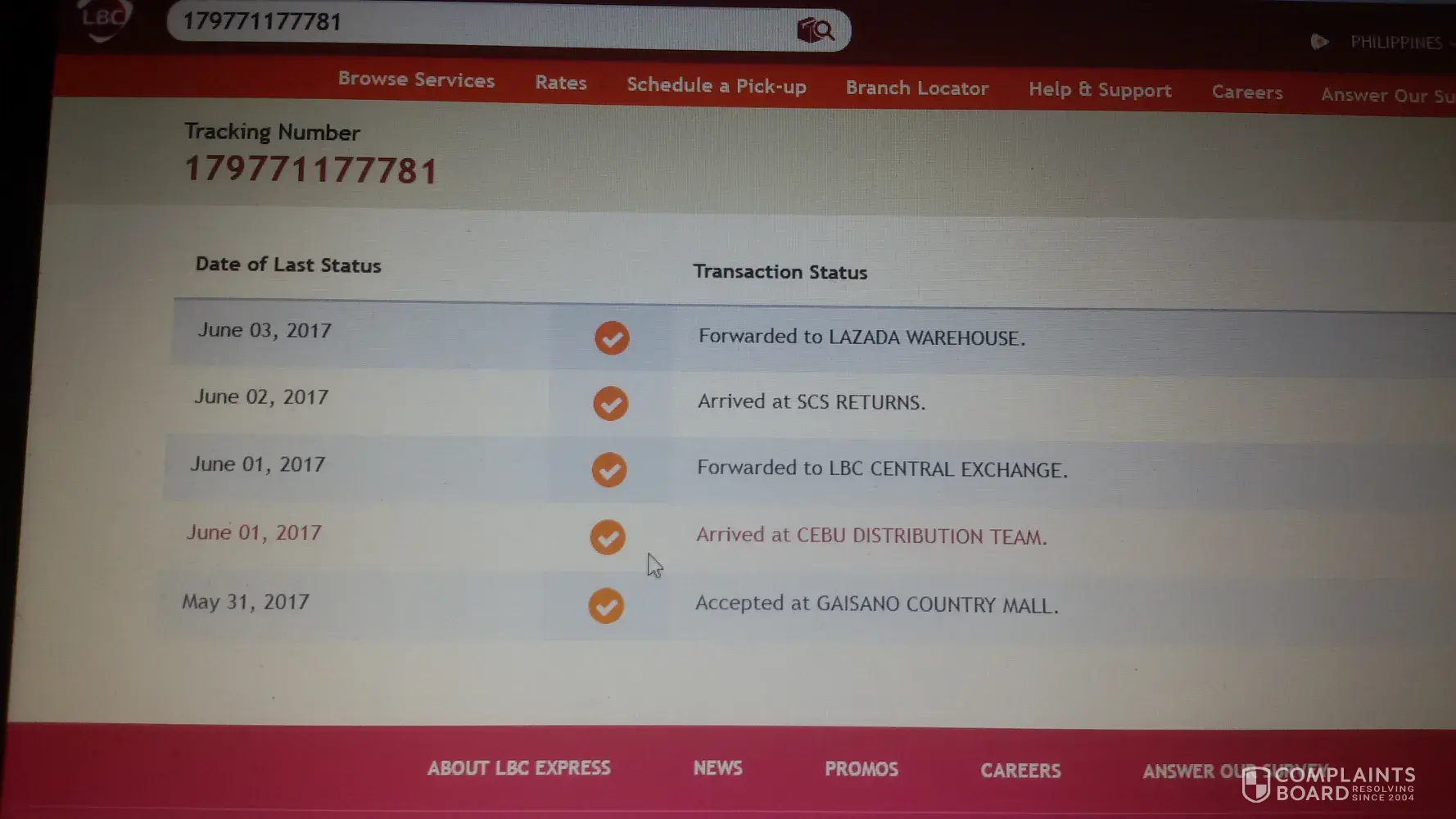 I bought a 2TB Seagate external hard drive from Lazada. The shipment was late, the delivery man left the package at a local store, and it was given to a tricycle driver who finally delivered it about 10 days late.
