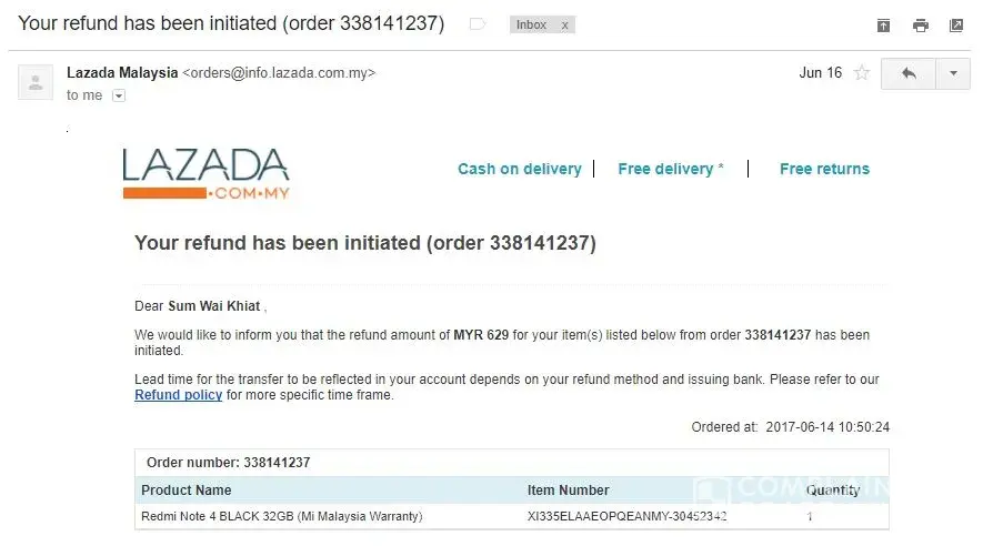 And I received an email notification and claimed that the refund had been initiated on 16th June.