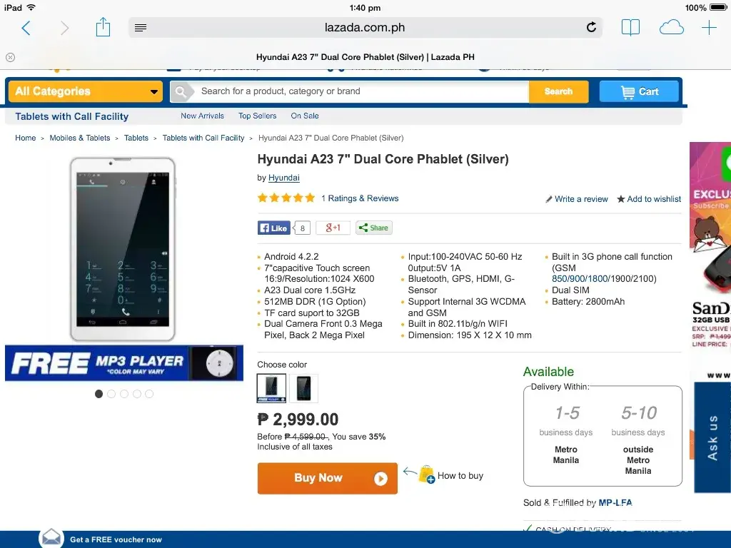 Item that was purchased from www.Lazada.com. Ph was a tablet and was worth 1, 280php, i know it is not much but the quality was very bad. Items purchased in divisoria has much quality than the item bought in lazada. When i got the unit, the insides was like shaking like it's loose or something. We were having a hard time charging it and powering it on as well; we don't have any issues powering it off (Since it also does it by itself-battery won't last 5hours) but powering it on is a big issue. I didn't return the item back to lazada because i know i'll have a hard time processing it anyways. I don't want to process something that lazada won't even do (I know they won't give me a refund anyways, just some coupons i guess). Just kept the item so it'll remind me not to purchase anything from lazada again!
