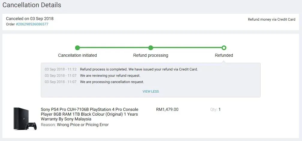 Now this month, September 2018, I accidentally noted that Lazada still owed me 10 SGD. I was so pissed and wrote an email asking for a phone number that I can call and make a complaint. Since then, I received a few emails asking me to fill out details again. I refused and told them I would call and complain. Hadn't done that as I felt sick to speaking with Lazada CS people. They just repeat the official responses with nice words but never resolve any issues. They are all liars to me now and will never earn my trust again! Since the incident, I stopped shopping with Lazada.