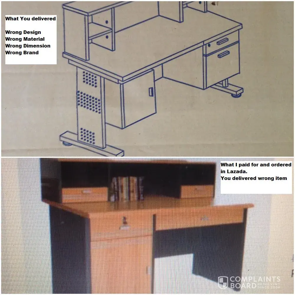 7 April : Desk delivered - wrong brand, wrong design, wrong size, everything is totally wrong, not in line with photo advertised on the website, totally scammed - I have sent photo to Lazada through contact us ( attached photo )