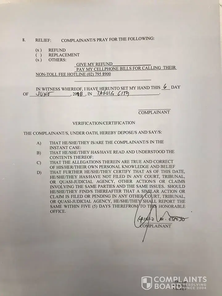 Also, I learned that their hotline is not toll free outside manila. So I wasted time and money by following their refund process. A process set by their own standard policy which they are failed to comply.