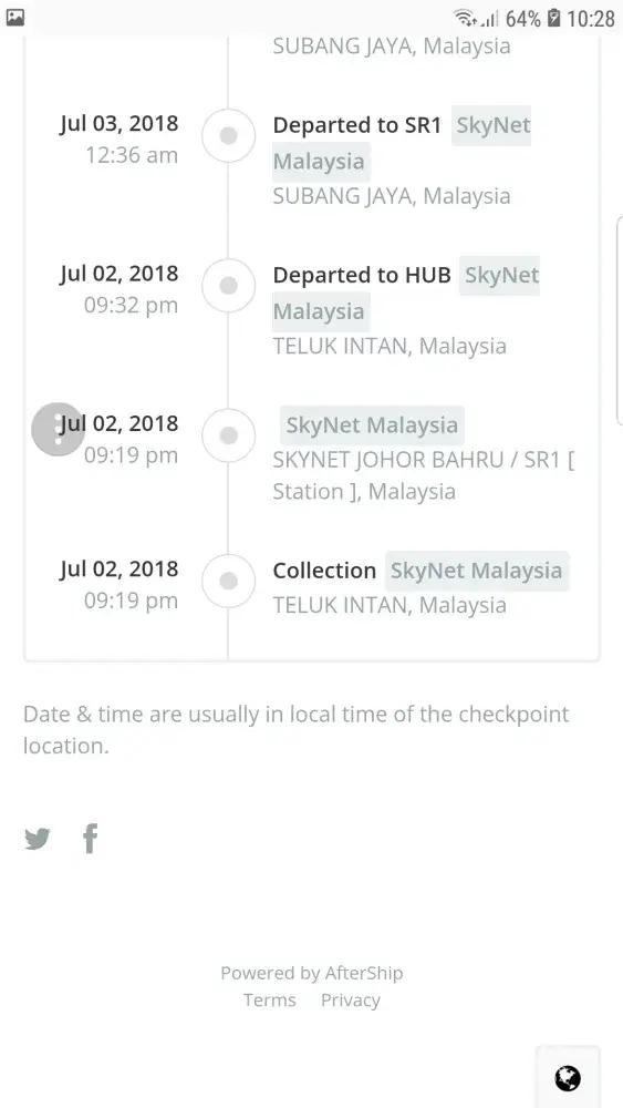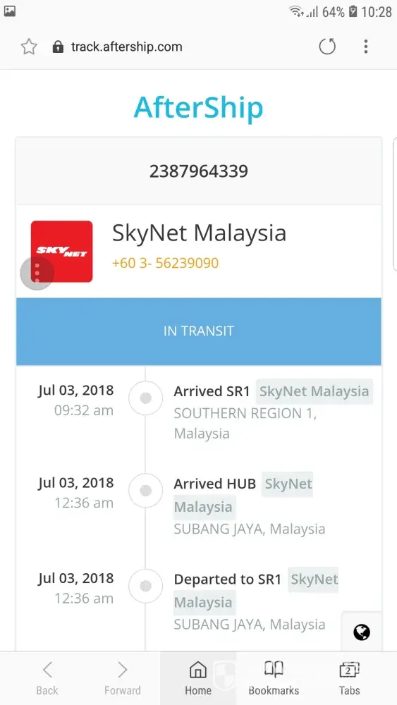 When I checked tracking number, the status of my package shows it arrived my region on 03 Jul 2018.