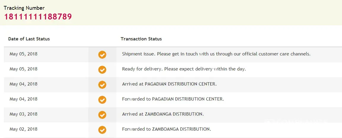 ito na lumabas "Shipment issue. Please get in touch with us through our official customer care channels."