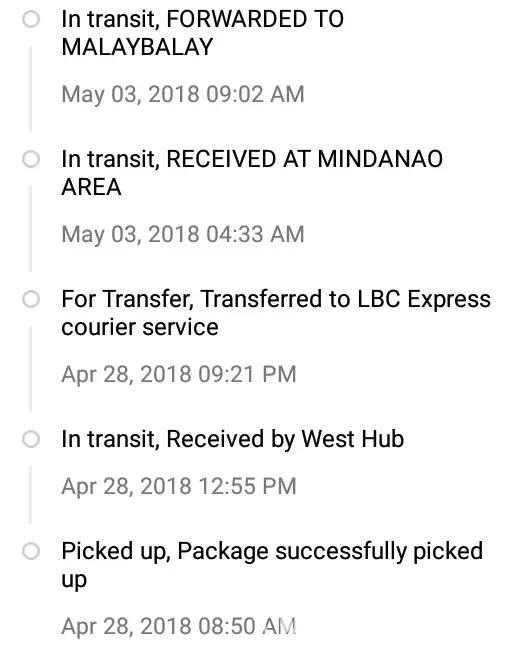 Ordered may 16, 2018 until now, may 29, 2018 still di padin dumadating, need ng more employee ang lbc malaybalay branch kasi as per checking dun mismo sa branch, tambak lahat ng untouched parcels sa branch, pls rectify this issue, di kami makakapag wait ng forever for this. Please take note, di namin alam kung yupi naba yung item or what, plus least priority nila e deliver ang via xpost kaya mas lalong delay