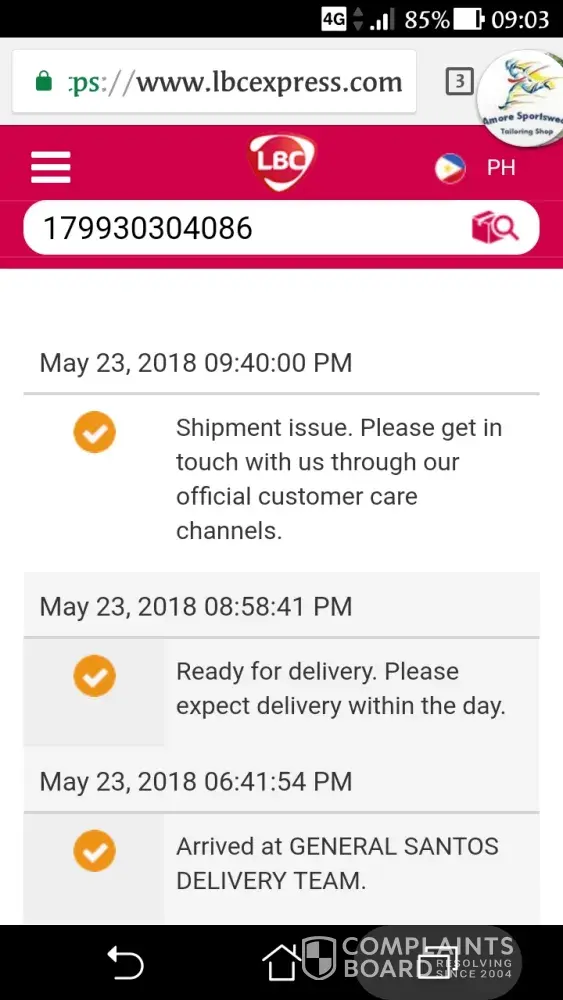 I tracked an item which was supposed to be delivered yesterday. It says that there is a shipment issue. It is my first time having a transaction with LBC and I don't know what to do. Will my item still be delivered despite having a shipment issue? I hope my item will soon be delivered for I will have a busy week next week and I might not be able to give time regarding this issue. Please LBC.