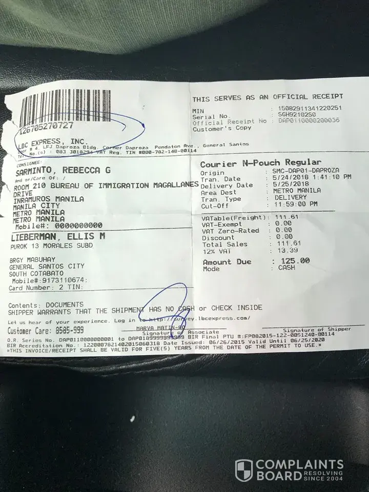 I signed an undertaking to send the item via lbc to immigration and that it had to be there by today or I am in default and will lose my visa. There is no fallback and that cost to me will be in the hundreds of thousands of pesos.