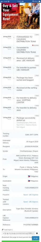 Lbc has had the item in manila for 48 hours. The have according to their own tracking system miss-routed the item two or three times. The destination address is not difficult. It is the bureau of immigration office in manila.