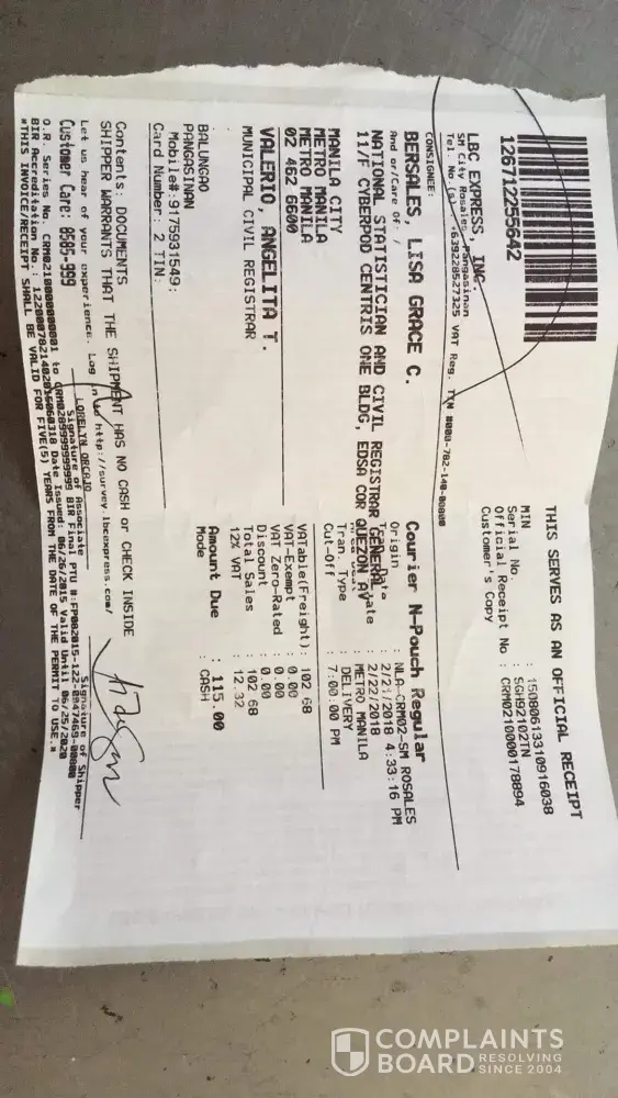 This document was shipped last February 21, 2018 and arrived at metro manila February 22, 2018. Also at the same date it was also forwarded and arrived at BAGONG SILANG DELIVERY HUB. Right until now the document is still their and there's no more update to it. One month has passed but still it's not yet delivered! The papers inside their is indeed needed for us to process the papers of my aunt! Can you Please check it again and deliver it ASAP! This is just too much of you that a month has already passed but still not yet delivered, please fix your delivering process! I also have shipped item during that day but that item was already received the day after shipping but then my another document for aunt was not yet delivered! I want an action on it! And it should be delivered asap!