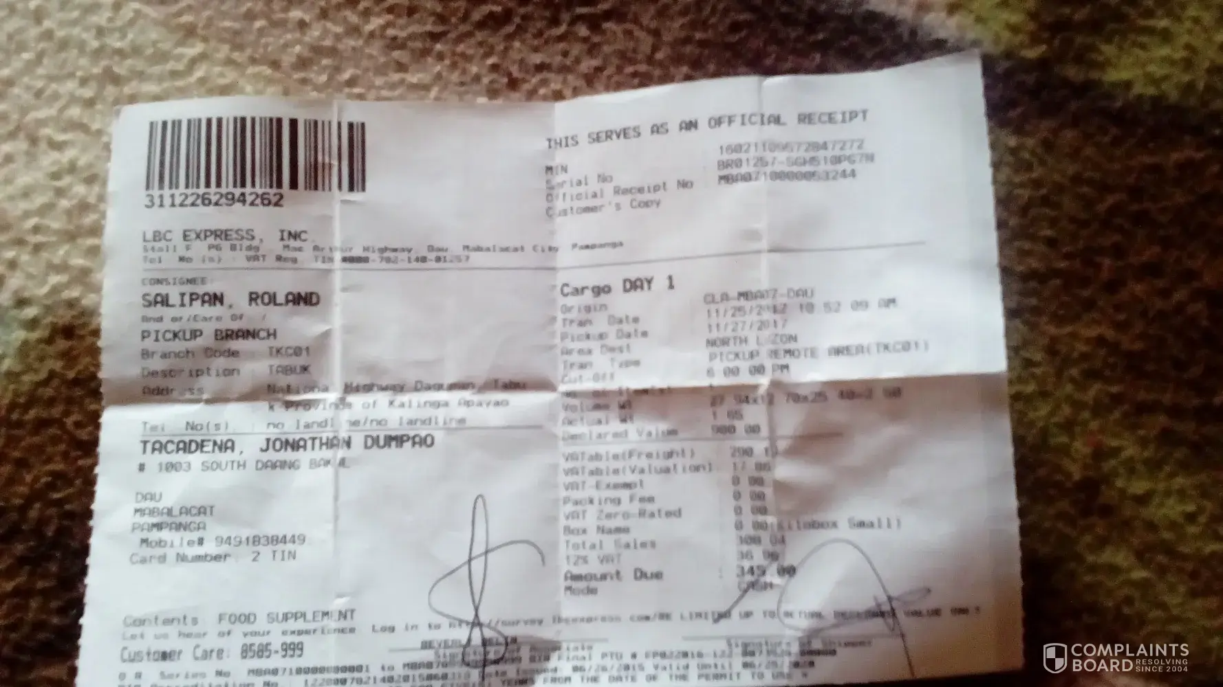 As per sender maayos nya ibinigay sa LBC Lianas ang original documents for shipping. pag dating sakin pag open ko na plastic ng lbc, super crumpled ang papel at may kaunting punit na sa side dahil sa pagkacrumpled nya. Sana mapansin nyo ang complain nato dahil hindi maganda ang ginawa ng lbc sto. tomas batangas. Nagmukha na tuloy scratch paper ung document.