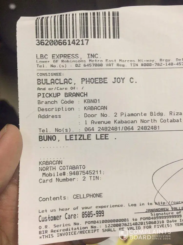 May reklamo na ako sa LBC SM North. Yung document hindi nakarating kay Romeo Alejandro 5th Floor Y Tower II L.L. Liveste corner Gallardo St. Salcedo Village Makati (Tracking [protected]). Maraming beses na kaming nagpapadala diyan sa LBC branch sa Market, Commonwealth Q.C. dito lang nagkaproblema sa SM North branch. Sa Web site ng LBC tracking menu na received daw ni Ruel Manalili subalit walang employee o security guard na ruel manalili. Baka kasi sa ibang building ibinigay ng messenger o naiwala niya yung mga delivery batch niya kasama din doon yong kay Julie Arceo tracking [protected] na ang dahilan incomplete addresss daw (PH9 Blk 12 Lot 15 PKG 1-A Bagong Silang Caloocan City) sa record ninyo maraming beses na kaming nagpapadala kay Julie Arceo wala namang problema, pero sa SM North problema na. Please investigae dapat makarating yung document sa kanila. My CP [protected]