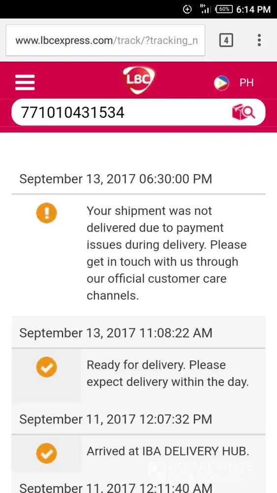 Tracking # [protected] sabi sa tracking my item was not delivered because of payment issue eh updated ako when tracking my orders at lazada.ph. yung item is expected to be delivered kahapon pero walang komontak na courier sa akin. Please i need the item. Ready naman ang payment ko what happened Iba zambales LBC Hub. I need the item. Please update your courier