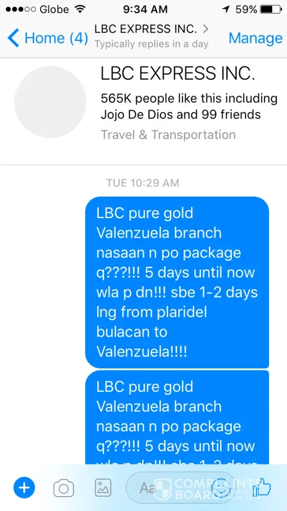 Magsara n kau! Never on time! Always delayed! Until now wla p dn package q kla mo nmn galing inbg bansa s sobrang tagal! Eh galing lng nmn bulacan to Valenzuela! Mahiya nmn kau taas ng singil nyo pro bagsak nmn service nyo! Mga sinungaling p kau! Kya nga nagLBC pra ndi n mahirapan pumunta at magdala ng package kso dpat pla ndi n lng baglbc sna nand2 n ngaun package q! Door to door nga db bkit kelangan qng pumunta s office nyo! Binayaran kau ng tama kya magtrabaho kau ng tama!