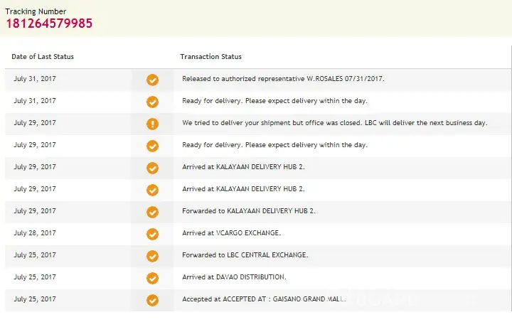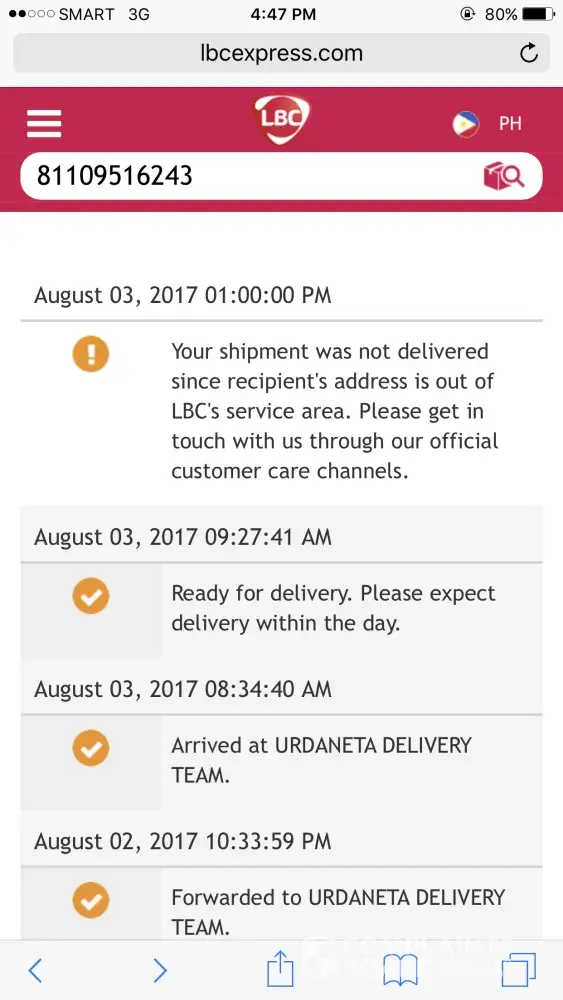 The lbc tracker said "your shipment was not delivered since recipients address is out of lbc's area"