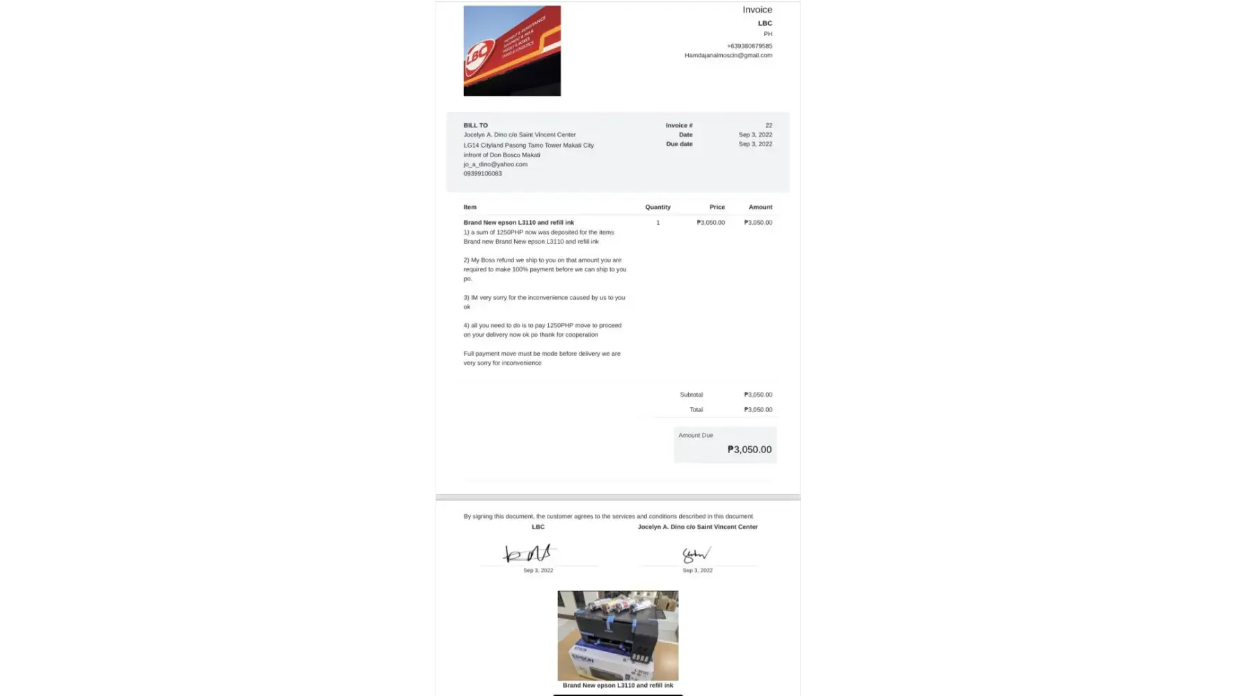 May nagbebenta ng printer nag book daw thru lbc pero ang daming hinihingi na pera na scam ako total of 6200 pesos thru gcash