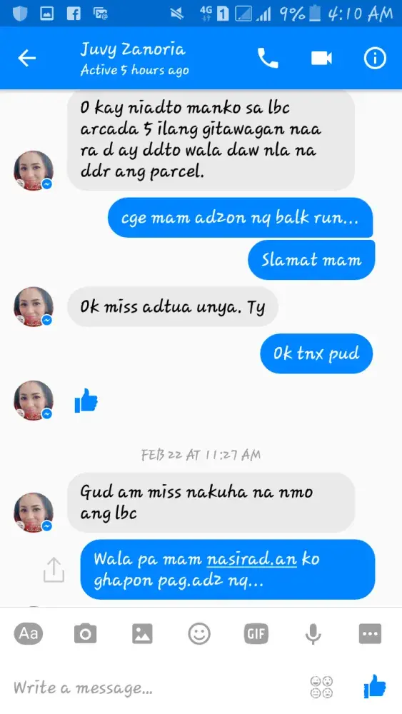 Kinontak nila ang marikina / cainta delivery team particulary sir eric f. Fabella (team head) sinabi sakin n naaksidente dw last friday feb17 un rider n assigned near the area nun pinagpdalhan ko so i understand atleast mdyo nlinawan ako lalo n nun sinabi nya n iccommit dw nya n kht abutin ng gbi today e mrreceive nun recipient ko un package. Tapos around 9pm ive got a tx message stating n inattempt dw knna 2pm ideliver un package at closed dw un bhay ng friend ko! How come closed un e residential address un ndi nmn nwwlan ng tao dun dhil housewife lng un barkada ko tska may aso sila s gate so if ever may tao s labas ng bhay nila kakahol at kkahol un tska dpt tinwagan nila un friend ko pra sabhin andun n cla s tapat ng bhay nya kaso ndi gnun ang ngyre so ang ending up to this time and this day ndi prin naddeliver un package ko pra s friend ko..
