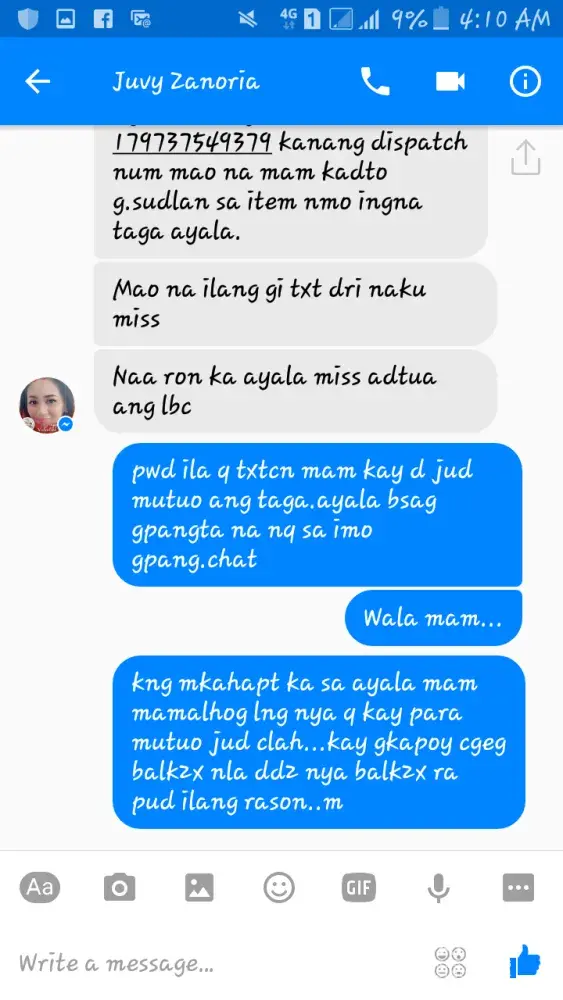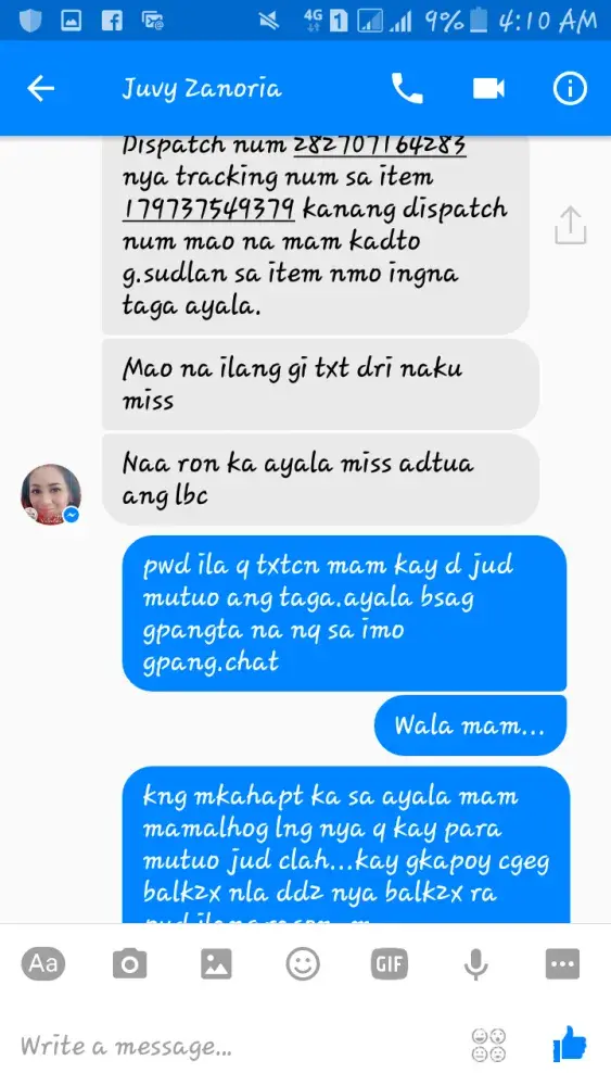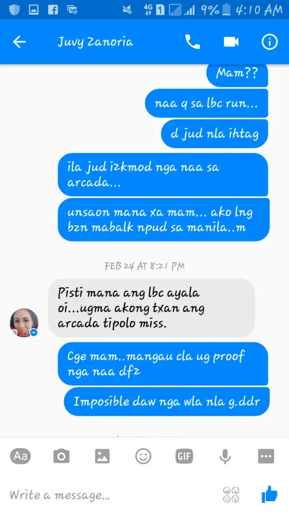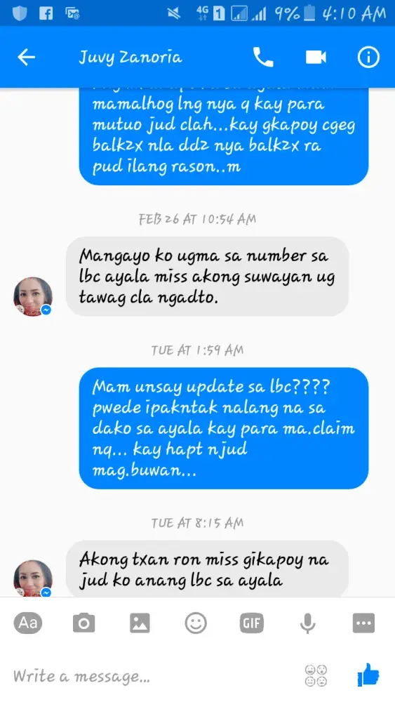 Ang akong item (tracking number: [protected]) kay mga 1st week of february pa gipapadala nako balik from manila to cebu then ako ra untang ipick-up sa ayala. So ang sender nga si Juvy Zanoria kay iyang gpa.resend sa Tipolo Arcada nga branch pero ang ipick nako LBC Ayala Branch. Niadto ko sa ayala kay giingon sa akong sender pwede na ipick-up pero pag-adto nako sa ayala gitukmod ko nila nga sa LBC Tipolo Arcada daw ang status. So gikontak nako ang sender para ipackeck sa Tipolo ang status sa item pero ilang itukmod napud nga pending ang status sa ayala branch. So ako napud giadto sa Ayala and gitukmod napud ko nila sa Tipolo. Perti nakong balik-balik pero hangtod karun wap-a japon nakuha ang item kay wa q kabaw kung asa ang status jud. Gusto nako matawag ang attention sa manager sa LBC Ayala ug LBC Tipolo kay ako as customer nibayad ug sakto sa charge for pick-up sa item nga hangtud karun wap-a makuha mag-1 month na tungod sa ilang miscommunication.