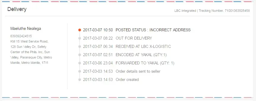 Bakit naman nilagay nyong incorrect address yung status ko? Nasakin na yung item. Kaso di ko maclaim yung points ko sa shopee kase ganyan nga yung status na nilagay nyo. Hindi ko na problema kung ang paniniwala ng delivery boy nyo is mali ang address ko which is tama naman. Tumawag pa yung nagdeliver at MALI daw address ko. Pinakausap ko sya sa guard namen at napatunayan ko namang tama address ko. Eto ang tracking number ko: [protected] Inattach ko na din yung screenshot nung status nung item ko