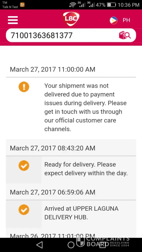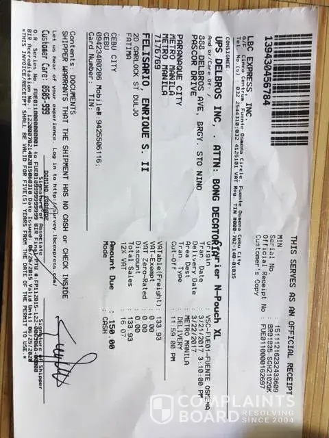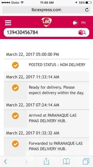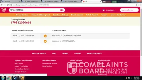 On March 21, 2017, I sent an important and urgent document from Cebu to Paranaque City, Manila. The documents containing in the pouch was urgent and important because the delay of receipt thereof will cause the delay of our shipment, and additional storage cost, not to mention dissatisfaction from our customers. Im not sure if you could empathize to our situation.