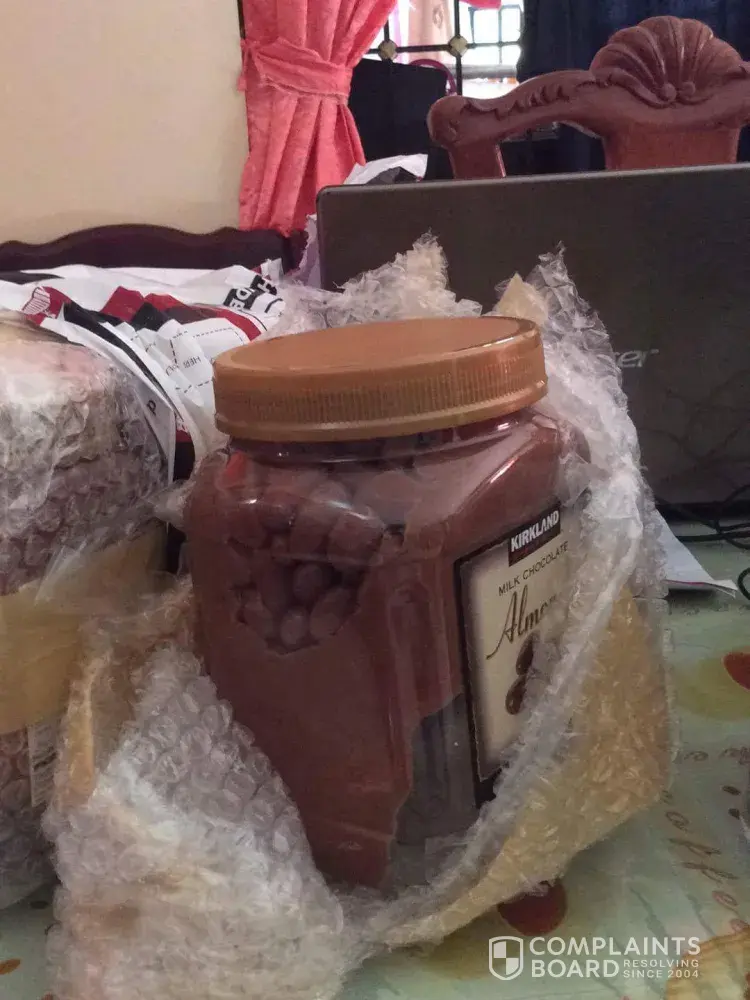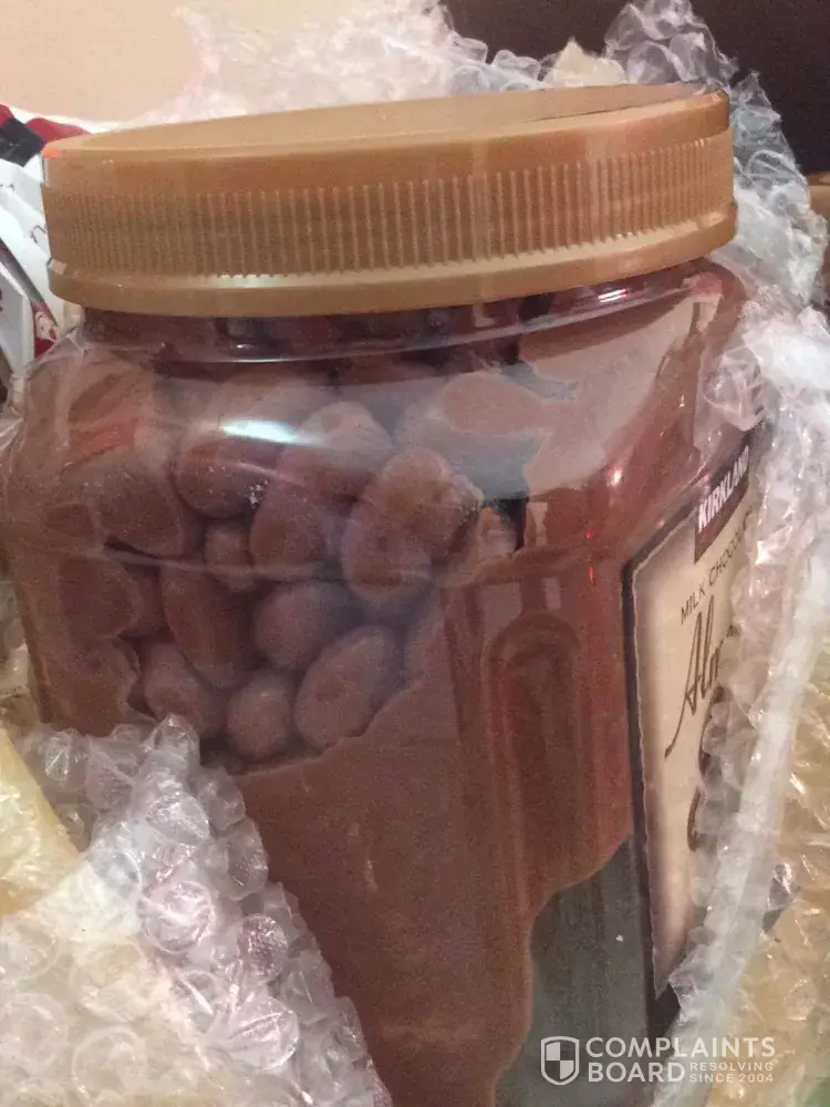 I received my items (4jars kirkland almond chocolates) melted. It is in good condition when sent to me. It is for my business and now I cannot sell them. Kindly do actions about it. I believe it is because of the mishandling of the items. It costs 3960php and its a lot for me because it is a hard earned money. I hope you will do something about it.