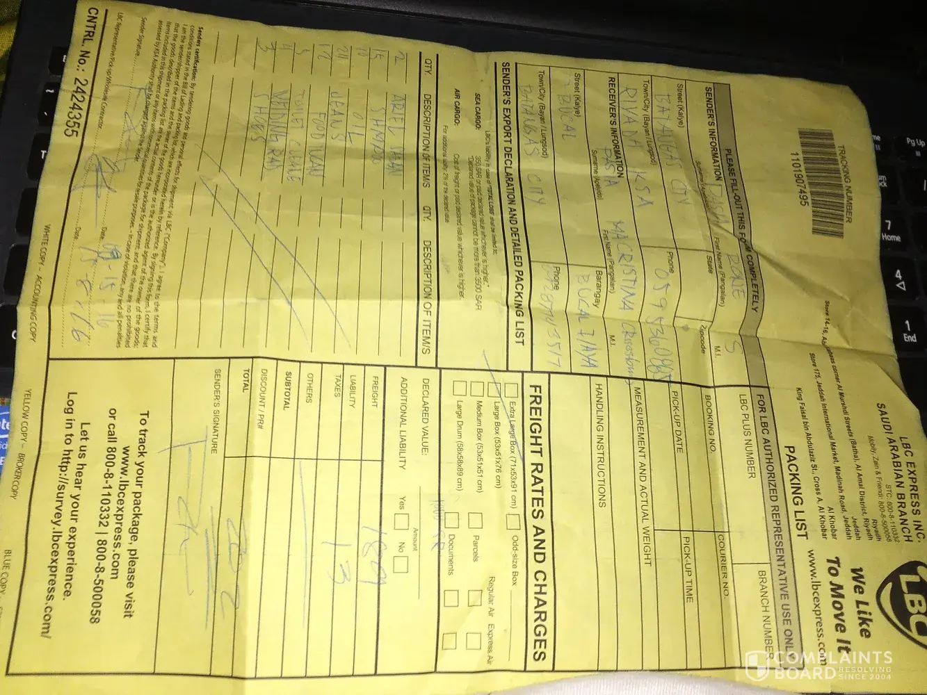 I am complaining regarding of the parcel that I sent in which the time in front of the LBC staff it was check