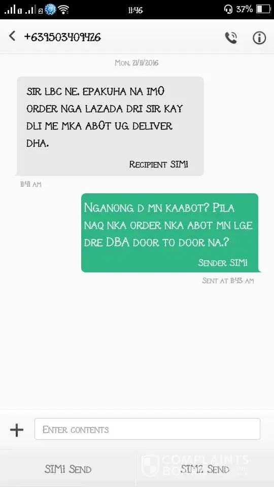 gusto ko lang po mag reklamo sa mga staff ng lbc dito sa iriga city, camarines sur bicol branch. mga walang ugali at masusungit ang delivery boy dito. sabi sa staff ko sa office na pag wala daw ako bukas dun na 10am ako nalang daw ang mamasahe at kumuha sa opisina nila sa iriga. eh di nga sila nag text o nag inform na mag dedeliver na sila! tapos kasalanan pa ng costumer na wala dun at di nya nadatnan! bakit ganun ang systema nila sa lbc iriga city, camarines sur, bicol branch! mga walang modo at ugali! sabi sakin di daw nila trabaho ang mag text sa costumer kasi alam na nila kug saan mag dedeliver, eh pano nga po kung umalis at walang tao sa dedeliveran nila... wala silang proper coordination sa costumer tapos sila pa ang galit! ano ba yan lbc! di ganyan sa ibang branch mga masusungit ang sa iriga city brach mga walang ugali! di gaya ng sa legazpi city branch na approachable at nag tetext pag sila ay mag dedeliver. please sana maaksyonan itong reklamo ko kasi pangalawang beses na tong nangyari sakin and worst experience ever! sana maging magalang at approachable ang mga staff ng lbc sa iriga city, camarines sur bicol brannch lalo na ang mga delivery boy sa iriga city city, camarines sur bicol branch. sana may mag yaring aksyon dito sa email ko at di masayang ang reklamo ko!