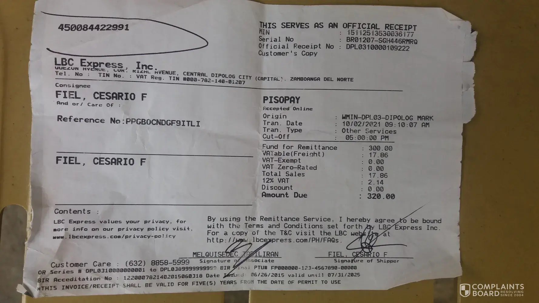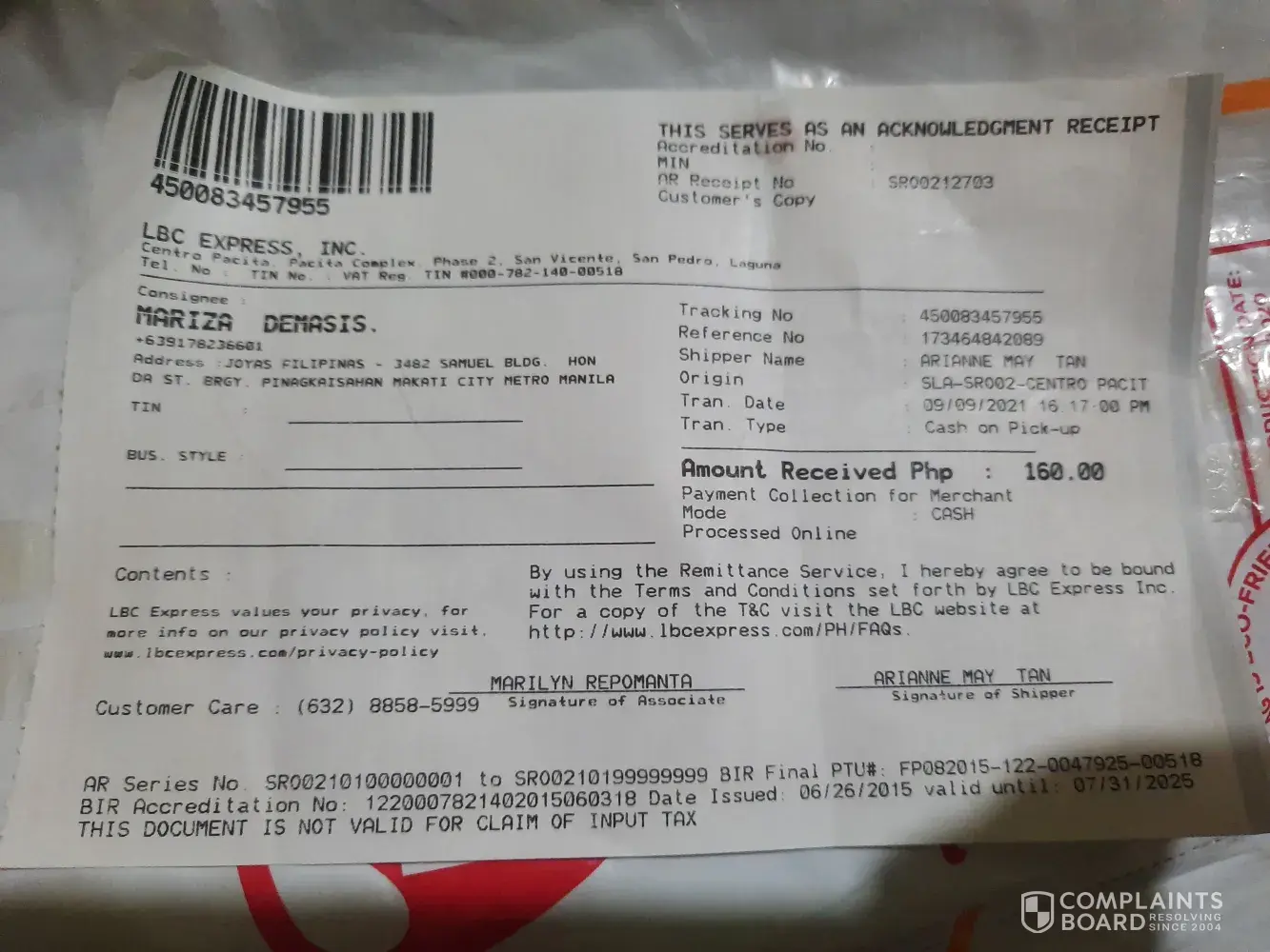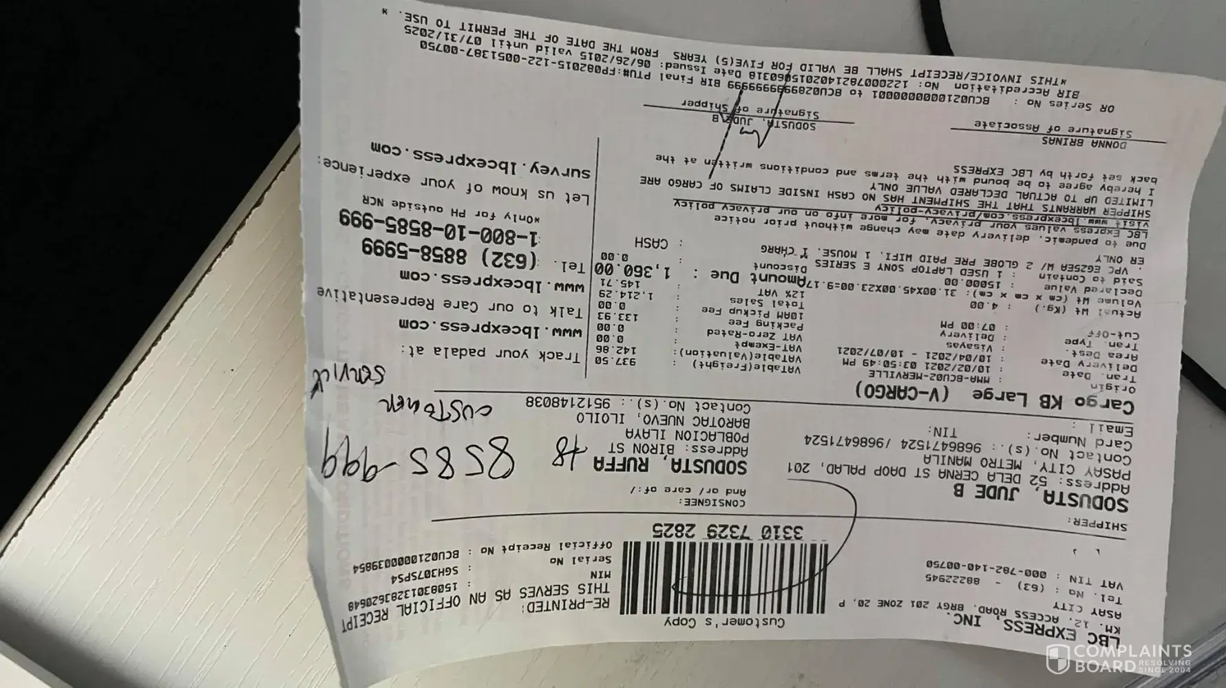 October 12, 2021 i left home at 1:00 pm to accompany and attend the court hearing of my niece in Mandaue trial court. I arrived home around 8:00pm already. In the midnight before I slept i tried checking and there I saw the tracking record and confirmation that it was DELIVERED to me 10/12/2021. This morning I asked our compound if there was any delivery made yesterday for me - NONE. Although it is very unusual that they will say DELIVERED without even texting me or calling me re: delivery of LBC on the way. They even texted confirmation to the shipper at 4:20pm yesterday that item has been delivered to me? REally? To whom? Can your personnel show proof of who received it?