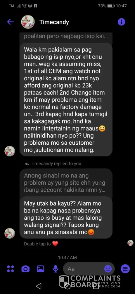 I complaint normalah marabong at lbc raon quaipo branch, because she frightened me na hindi daw pwedeng isauli ang request kong money back refund, kapatid niya pala ang seller. I already back the product in the lbc navotas because of defective item and its already for pickup, but she is the one who contact me na hindi pwedeng igrant ang request ko sila dapat ang masusunod. She defend her sister .her sister is scammer because she cannot communicate me and she block me thru messnger . Ms marabong is the one who communicate na dapat hnd siya nakikialam ksi hindi siya nagbusiness nun kapatid niya...