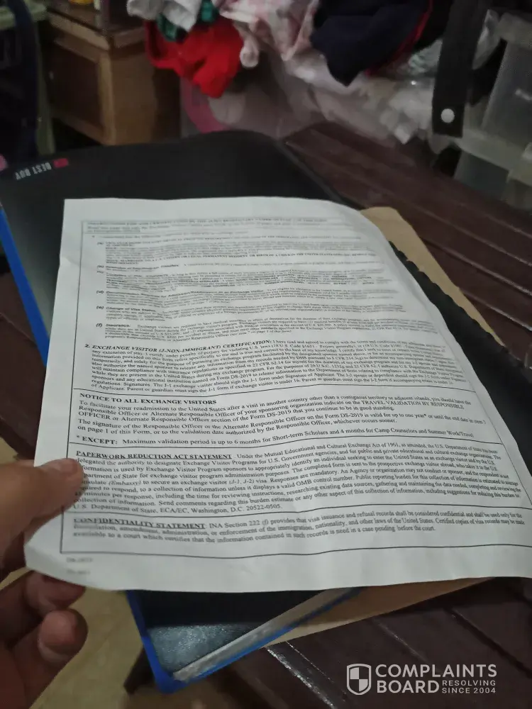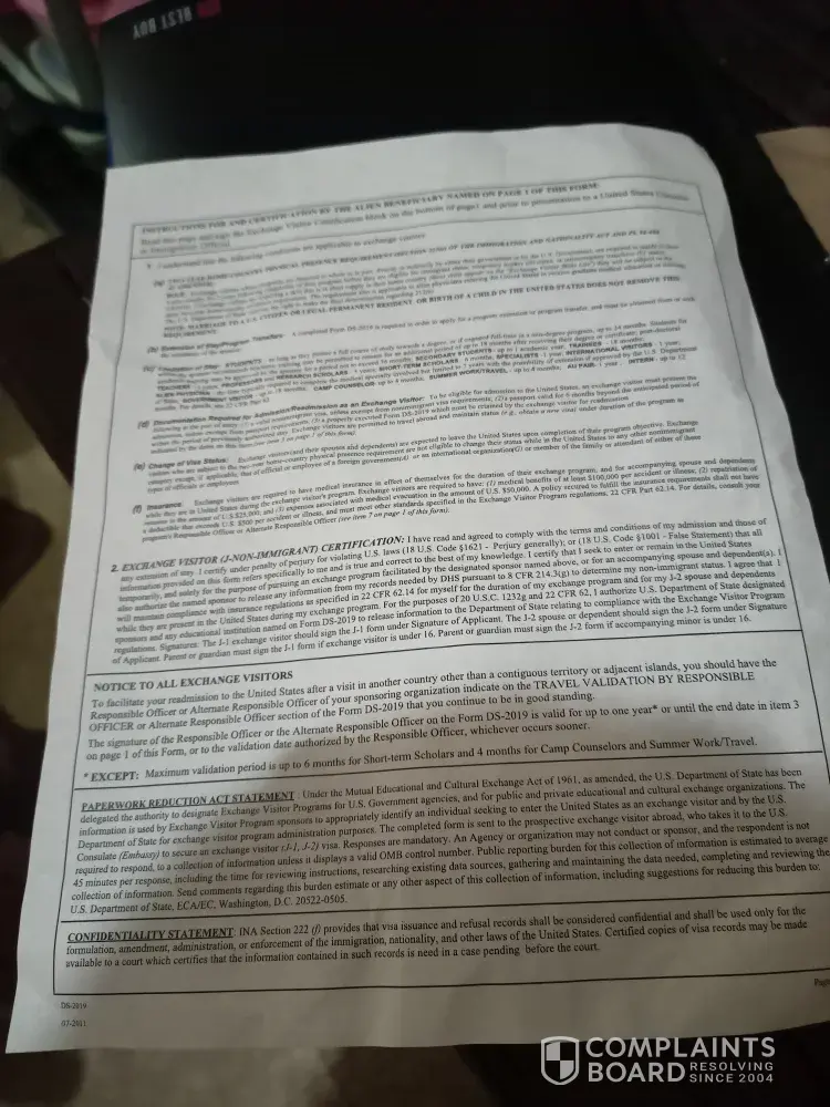 Im complaining about my received important document, DS2019 for my interview in the US embassy, as I accepted it, it is very crumpled and this is very important cuz I have to show it to the consul... Im worried I will get rejected because it does not look presentable...