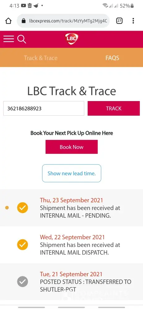 I checked my tracking no. It says received in the internal mail- Pending. Now its sept 26 and its still there. I dont know why it taking so long at their hub. They say within metro manila will take only 1-2days. Its been almost a week now. I paid the returning fee and keeps updating lbc kapasigan branch, they just said, for retrieval already but in the tracking its still pending.
