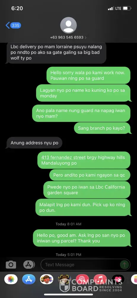 [protected]- Jewelry parcel was tracked as would be delivered on the 28th of September, 2021 but LBC failed to deliver. It was then tagged as "Shipment is with a concern. Please get in touch with our official customer channels." When I called, they told me the delivery rider tagged it as 'Unknown Consignee'. I waited all day, no one came and no one called, nor texted me, so it's impossible that this guy didn't find my house. I also had numerous parcels delivered to the same address and this is the first time that LBC failed to deliver. Come next day, still no answer whether my parcel will be delivered or not. Now it's already the 30th and I just remembered I have another parcel but it was a COD ([protected]), it was pretty much the same that there's no movement from the Lipa warehouse so I strongly believe that something is wrong with their dispatch team. I called numerous times on their hotline, asking if I can get the delivery rider's name and contact number but they told me they have no access to it. I asked if they can tell me if there's really an active dispatch team in the area but still the same, "they have no access to it". I asked if they could see real time where the parcels are, they said it should be in the warehouse, but I am worried since there's no assurance that it is really there. Now I won't be home for a couple of days so if in case they will deliver it tomorrow, nobody will receive, and it'll be another waiting game for me, or worse, it will be back to its origin.