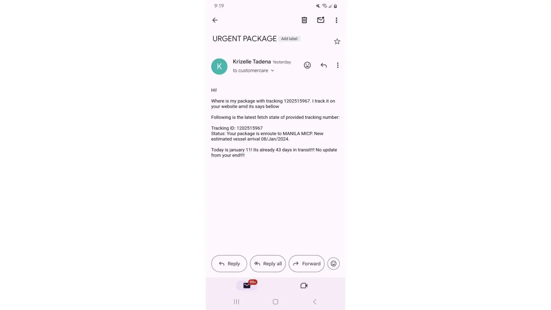 Desired outcome: gusto ko lang po malaman kung nasaan na ung parcel inaantay din po kasi yan