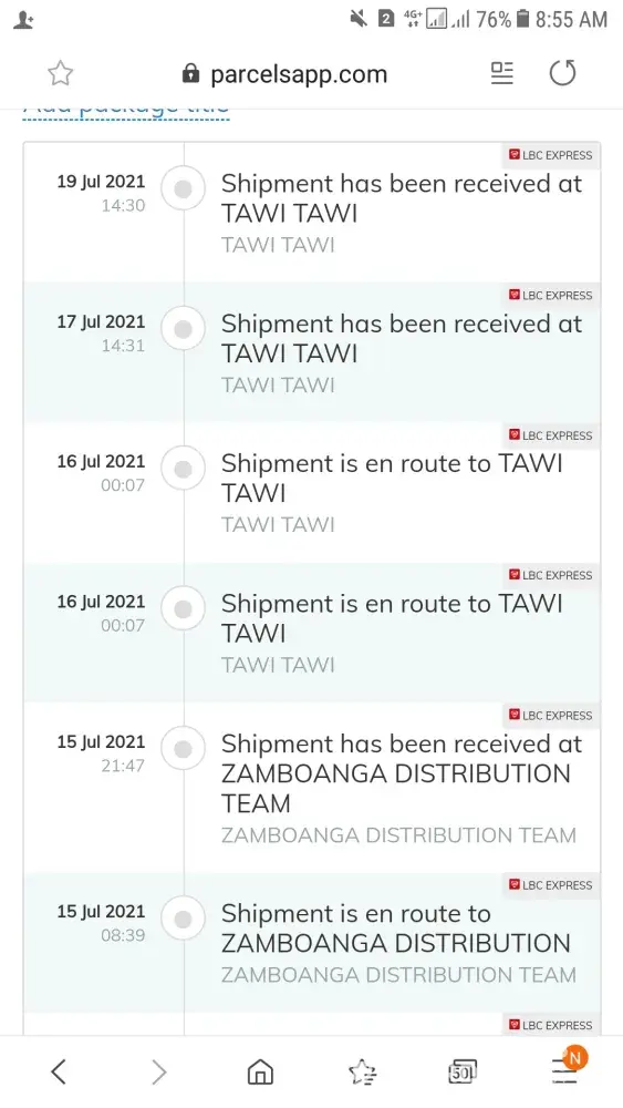 On the contrary, LBC Dipolog branch told my relative, Carmelita Dahili (the daughter of the patient), that the shipment was not received yet since it is being shipped by Cebu directly to Zamboanga. It was a different story told to her in prior hours that the item was yet in Cebu.