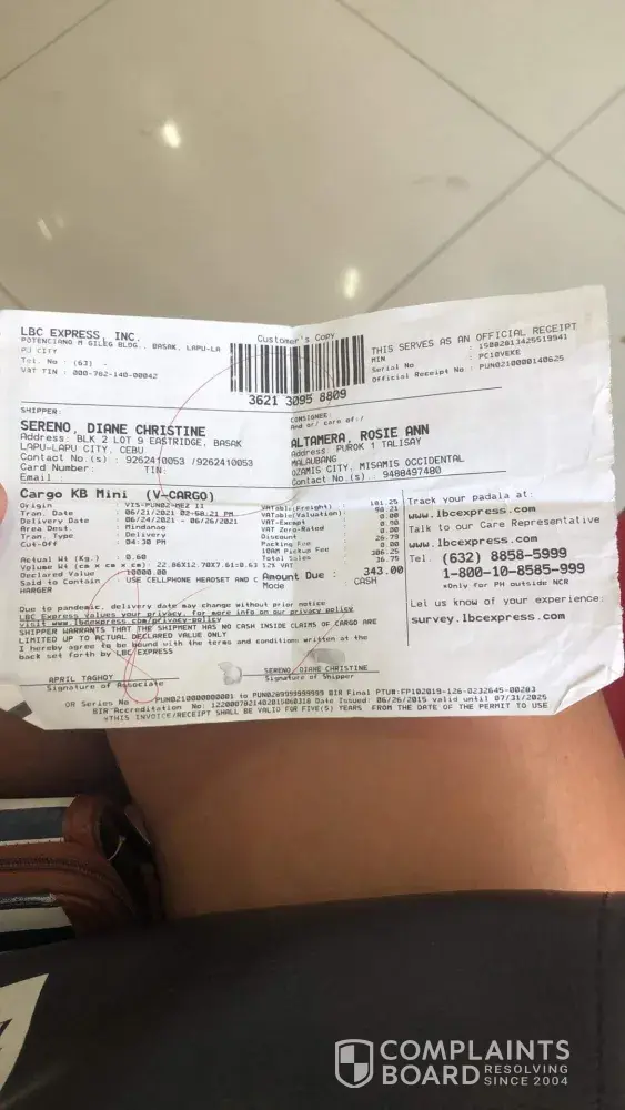 irereklamo ko lang po yung package na ipinadala ko kahapon papuntang negros ngayong araw dito rin samin diniliver ng rider, eh ang nakatanggap po eh bata(usually naman talaga sakanya ipinagkaktiwala yung mga package or any deliveries) kasi nasa trabaho ang pinsan ko kaya akala nila yun yung package nainaantay ko. Tapos dahil sa COD nga sya kaya nagbayad pa 435 pesos kasi hindi nman makukuha kung hindi babayaran diba, saka yung hinanap talaga nung rider is name ng pinsan ko mismo, so ito na nung nakauwi na ako sinabi nila skin na yung package kung ito raw ba rin yung pinadala namin kahapon kaya tinignan ko at un nga pagtingin ko un nga yung package na pinadala rin namin kahpon so tinignan ko yung details kung may mali ba pero tama yung from and to nya eh kaya ibinalik ko sa lbc sm san jose del monte pagdating don sinabi ko ko yung concern ko tapos yung pinakahead pa don na babae sinisisi pa sa bata eh kung tutuusin di naman namin kasalanan kung bakit bumalik samin yung package dahil tama naman ang details, so kami pa pinag-aanatay na bumalik ang rider bago pa ibalik yung ibinayad namin sa COD at take note walang ibinigay na resibo yung rider in exchange of the package and payment. kaya sana po yung mga ganitong insidente eh gingawan nyo nalang ng agarang solusyon para naman sa perwisyo nyo sa customer nyo. kami na naabala kami pa mag-aanatay don sa rider kung kelan babalik eh kung tutuusin pwede naman nila irefund yung binayad namin sa mismong branch lalo na lumabas naman na na item delivered di sana hindi aksaya ng oras at pamasahe sa customer nyo at sana rin updated yung mga cp no. ng mga rider nyo para kapag may mga ganitong cases eh nahaharap nya sa branch yung customer