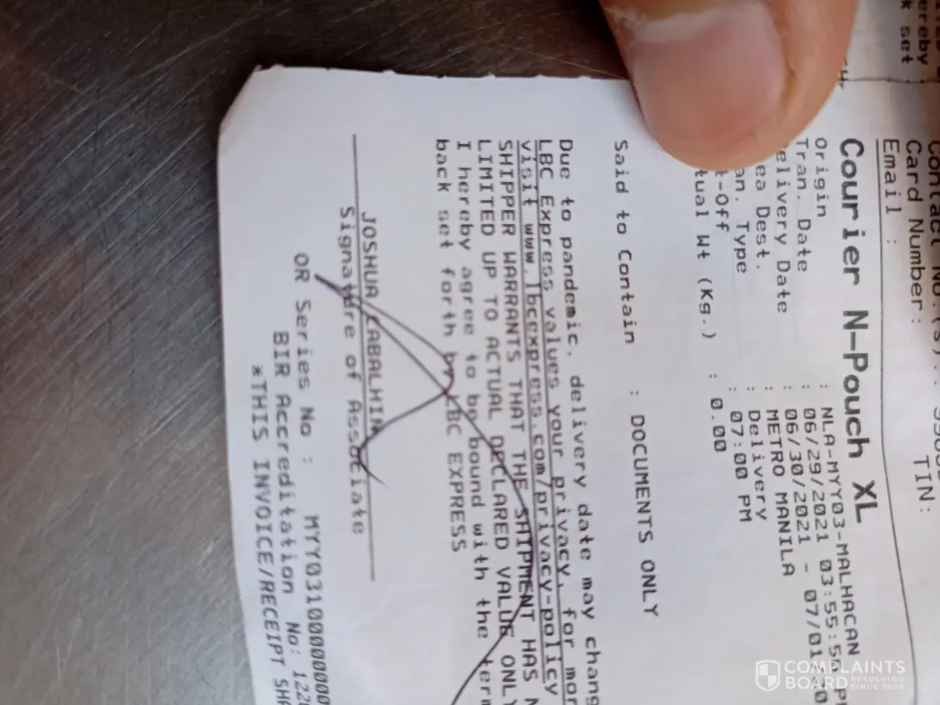 Nagpladala ako ng mga documents ng company nmin and then this the first time nanyari skin to, Our company is located at supima square meycauayan, and he address the shipper in citymall tarlac which wrong dpat chineck nya muna mbuti yung address ng shipper ngbgay nmn ako sa knya ng sticker dapat doon palang ok na.. di manlang sya ngtanung skin kung tama inuuna ksi ang chatting sa loob ng store kaya mali mali encode. Im so disappointed in LBC branch malhacan meycauayan.
