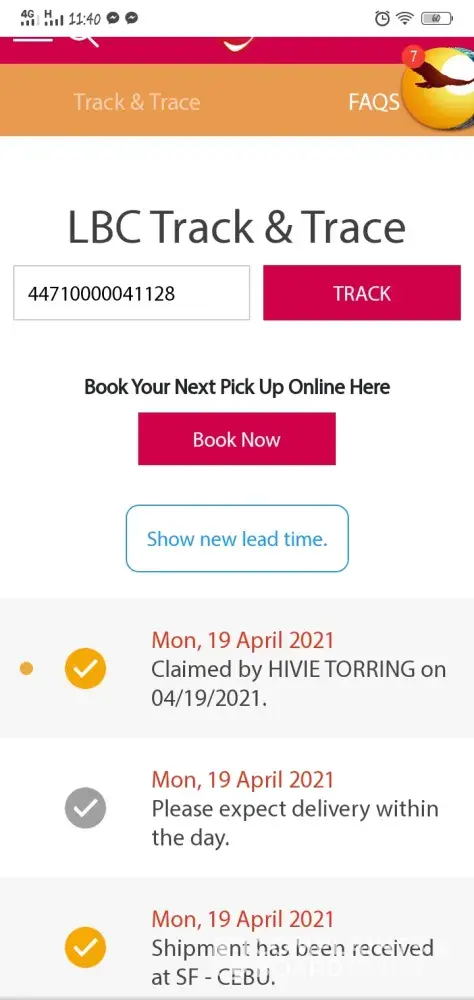 My parcel was claimed by my customer last March 31, 2021.
