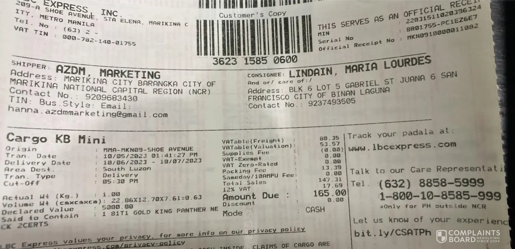 I've been emailing to LBC but the only reply i got was Auto reply asking me to track the package.