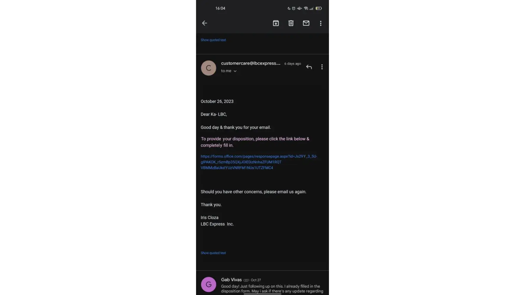 A parcel was sent to me by my friend from Singapore. She bought it from taobao and had the package shipped directly to my address. It has been a month and i still have not received my package. I coordinated with their customer service A LOT of times already but no one is offering me any real help besides asking me to fill up a disposition form. I requested for my package to be picked up in an LBC branch near me and they continued to ignore my request. A lot of their employees emailed me but never offered any solutions, they just kept saying "fill up this form". Di ko alam kung binabasa ba nila yon form na yon. I requested for my package to be picked up nalang instead of delivered kase ang bagal nila and wala naman usad yung parcel ko, also because of the fact na hindi ako palagi nasa bahay so baka ma-miss ko yung delivery. After requesting for it to be transferred sa LBC branch malapit sakin, i get an email na for delivery that day yung parcel ko. It's a holiday so wala ako sa place ko non. But i waited for the rider to at least contact the phone number i left, but throughout the day i received no phone call or text message regarding my package. I just received an update that it was returned to the warehouse. The following day, i email them asking for any updates regarding the status of my parcel, expecting for it to be redelivered, only to be responded with an email saying that my parcel was due to be "Returned to Origin" (RTO) without any explanation whatsoever. Now all they keep telling me is to coordinate with the sender because they already processed it as RTO.