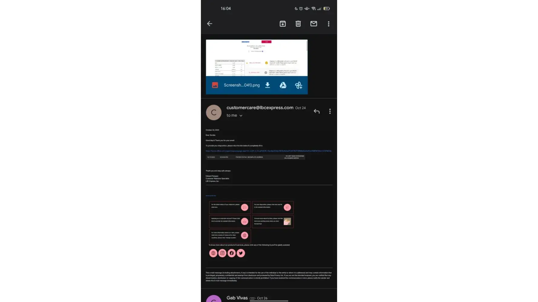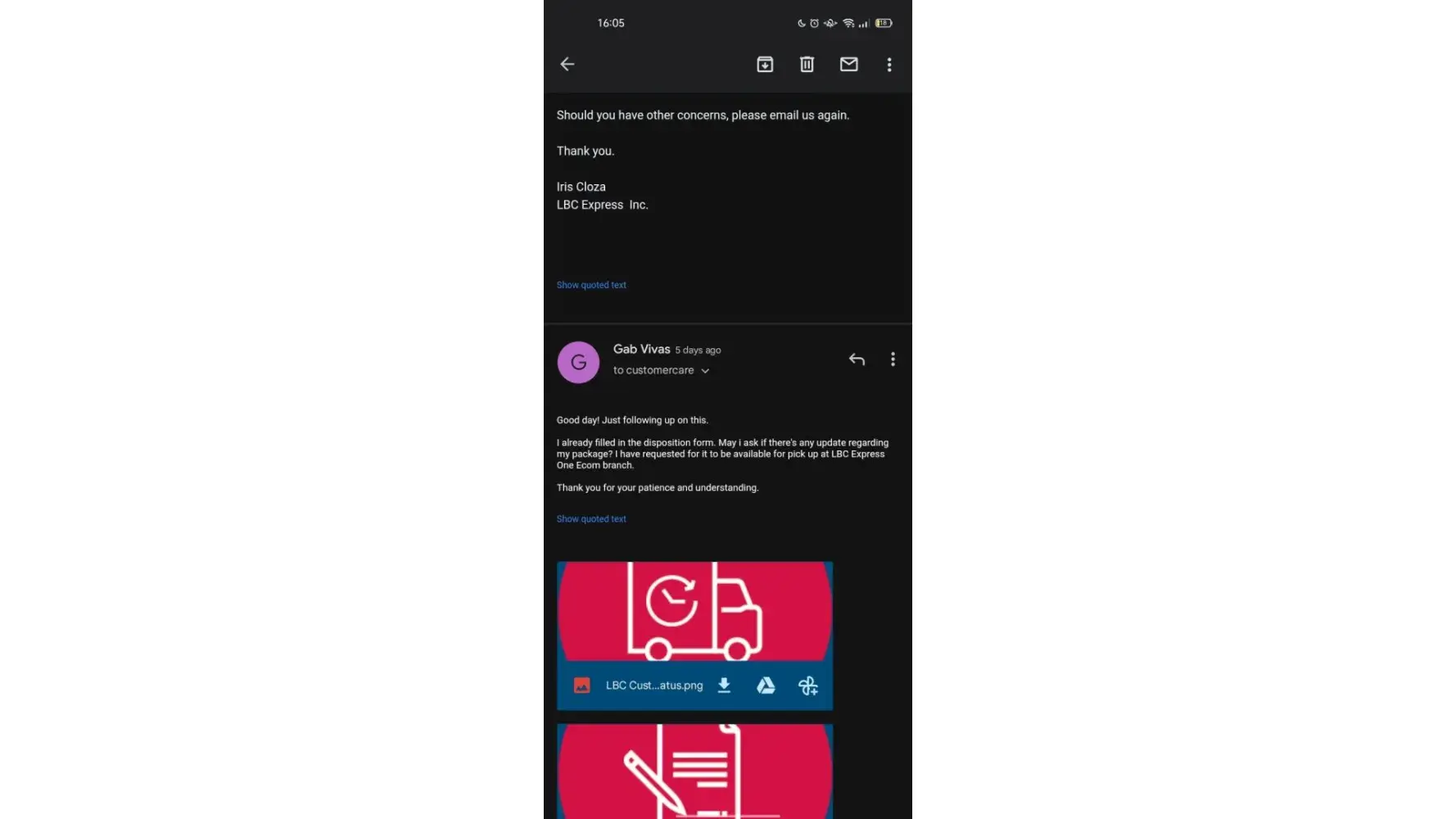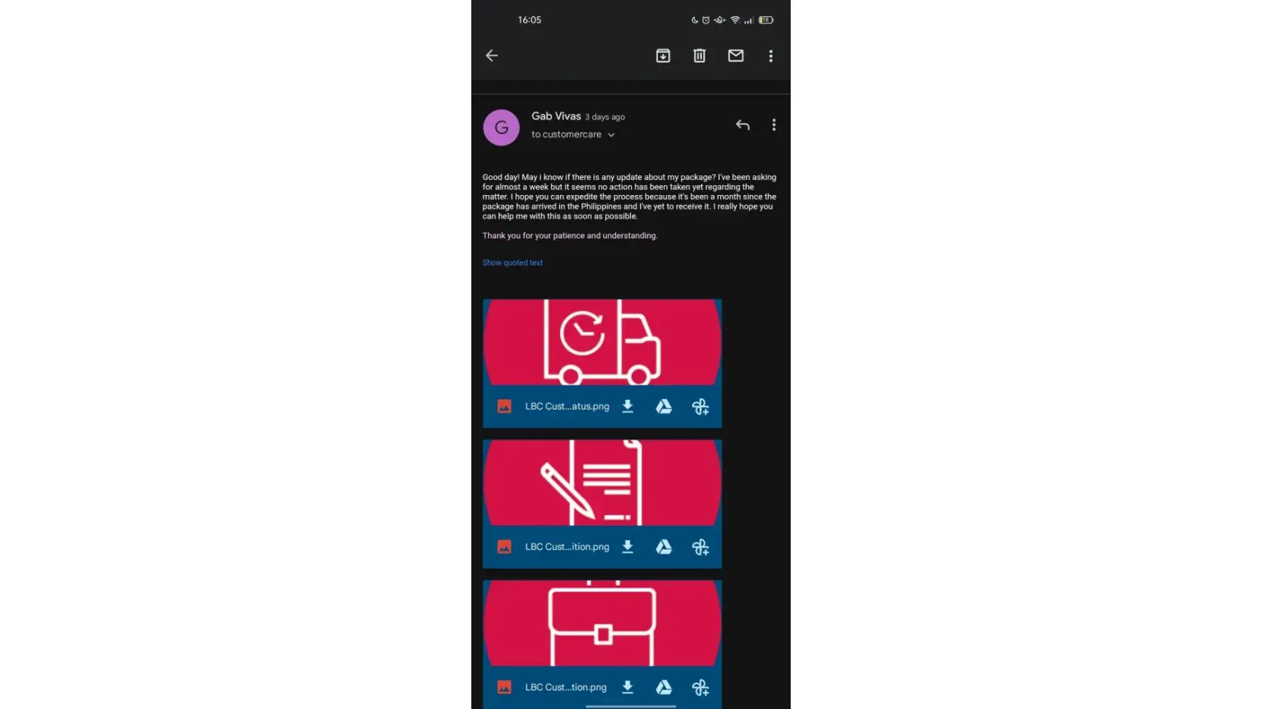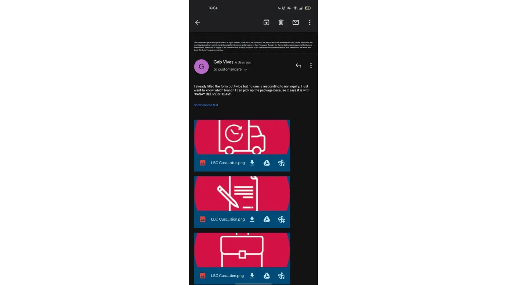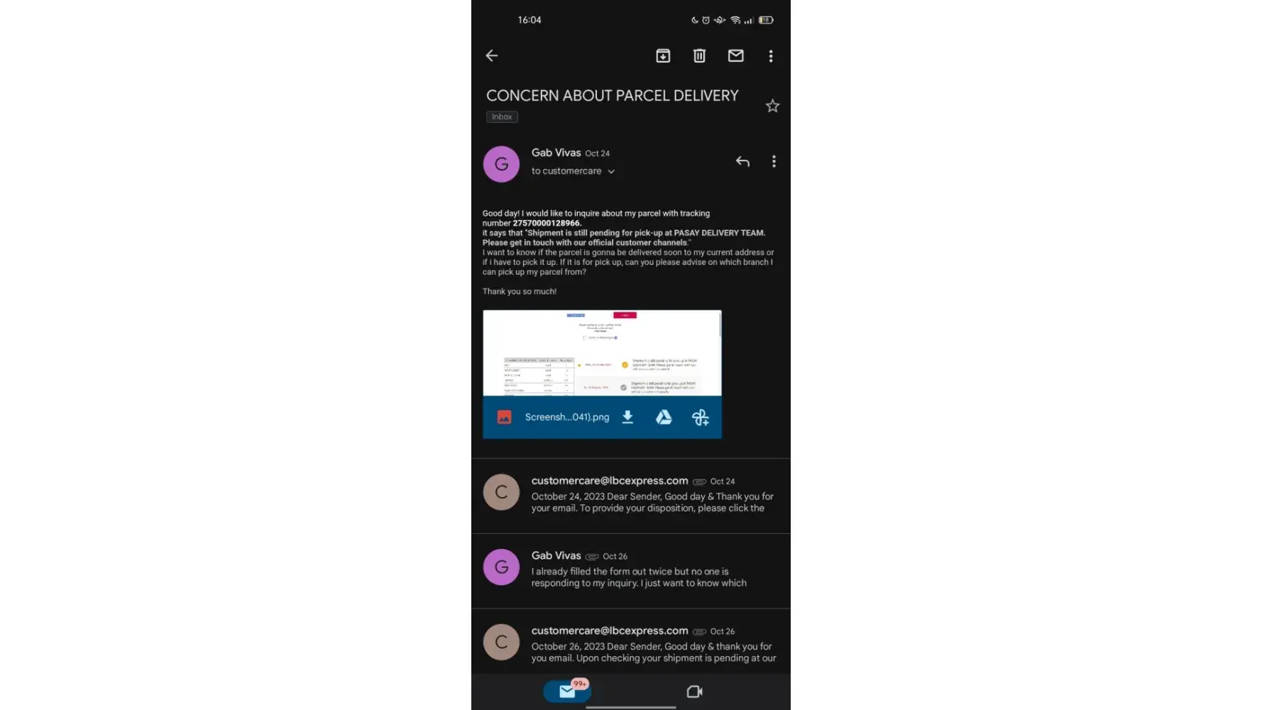 I sent a parcel from Mindanao to NCR last Dec 6, 2023. I was happy at first because upon checking at their online tracker after 3 days, my shipment is already out for delivery to my consignee. However, upon checking again on the 4th day, it says that my shipment is with a concern and that I should get in touch with their official customer channels. To make it short, my parcel is already overdue for its delivery and I have been keeping in touch with their customer service at least four times since Dec 10, 2023. As of this writing, my parcel that was sent last Dec 6, 2023 is not yet delivered to the consignee and already very long overdue in contrast to their promised 3 to 6 days delivery based on their website. And those are very important documents.