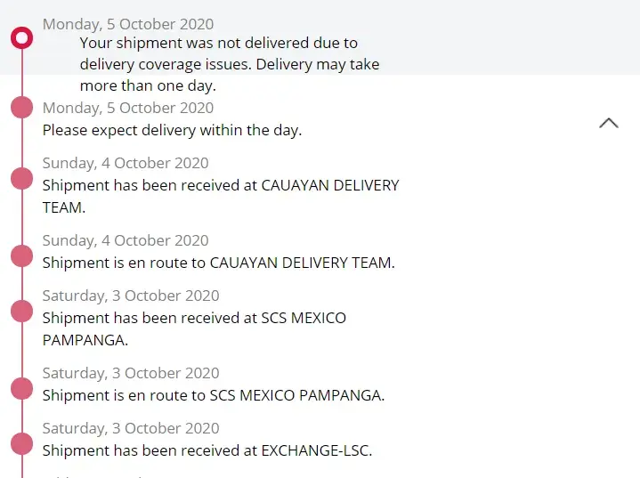 On september 15, 2020 I placed an order of 6 tshirts at penshoppe's website. I put my complete address and according to there website it's serviceable. They have provided me with this tracking number [protected]. Time to time I always checked and tracked my order and last september 21, 2020 the lbc people texted me that my parcel had arrived already but they instructed me that I am the one to get claim it on their warehouse. But their warehouse was to far from the address that I put on my shipping address. So I tried to contact them and ask if what could be the alternatives. I texted them if it is possible to deliver my item on the lbc branch near on my shipping address so that it will be easy for me to claim it but they are not responding. But now when I checked your tracking website, only to find out that it was the status is this