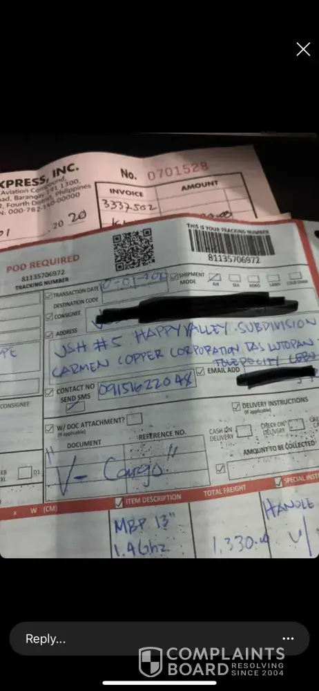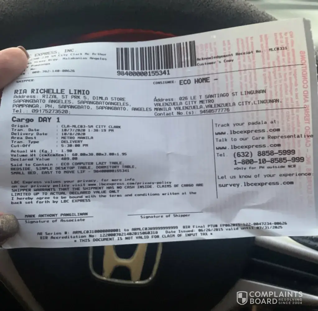 I am complaining that this item is not delivered to us and yet the LBC Gingoog Branch declared it received.As we track the said item is receive by the Branch last Sept. 25, 2020. We went there to follow up that why it takes long to delivered. They said that they will find it due to many deliveries arrived. As promise they will deliver it by Monday October 5, 2020. But days passed, there's no feedback from them. We called them to follow up for it last October 7, 2020 and they said that it was ready for delivery we just have to wait for the delivery man to come to our office. we hope and wait for it that the said item will be delivered on that day, but unfortunately it does not happened. On the following day we called them to ask why is not deliver as what it expected. They said, it is being received by the recipient we told them that its not true or it happen that we already receive it. We asked for a receipt or any proof that we receive it but they don't have any proof to show to us. As we asked the in-charge why is it the in the system they declared it receive by the recipient they said that they just updated it. How come that they just updated it well in fact it is being shown to the system that it is being receive to us. I hope that you could help us regarding this matter. Thank you.